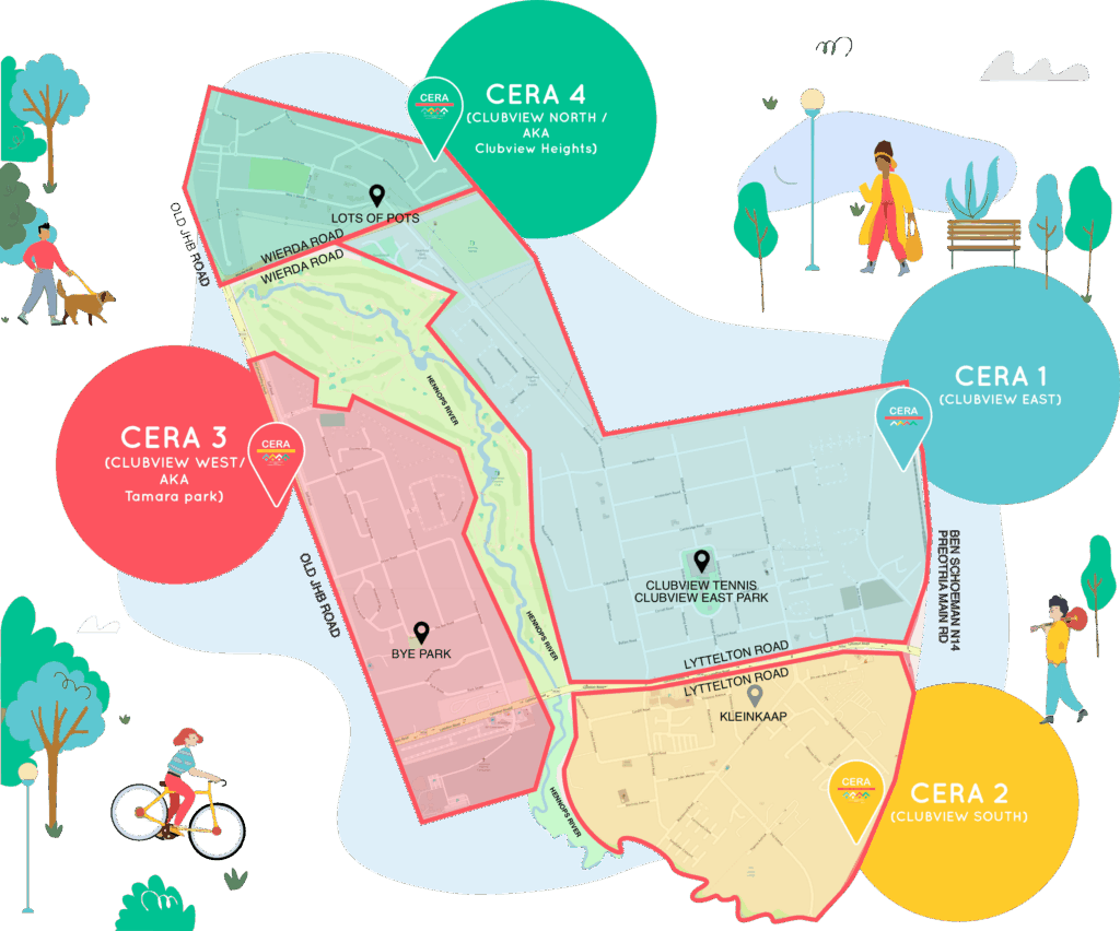 CERA is a non profit organisation funded by residents & local businesses to represent the community of Clubview, protecting resident’s interests, the community and bring visible upliftment.